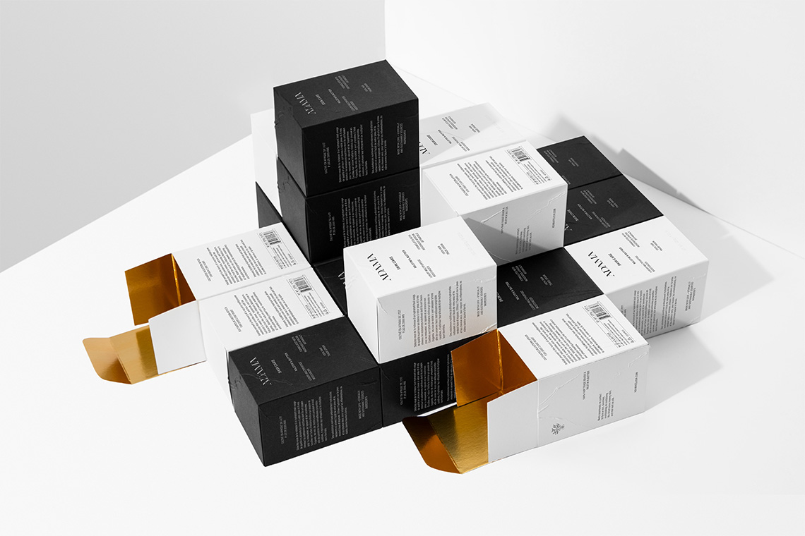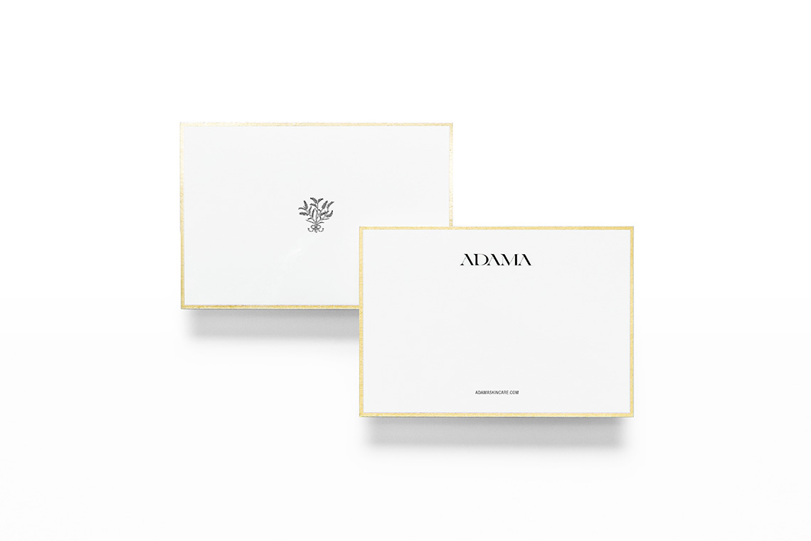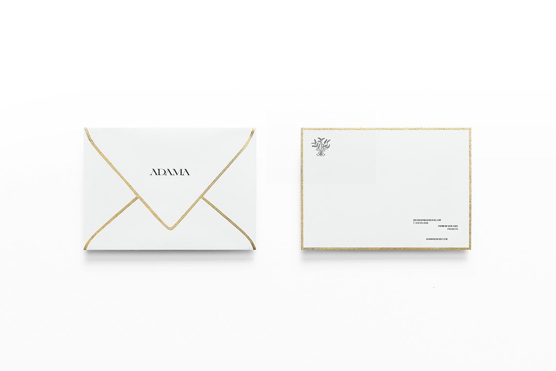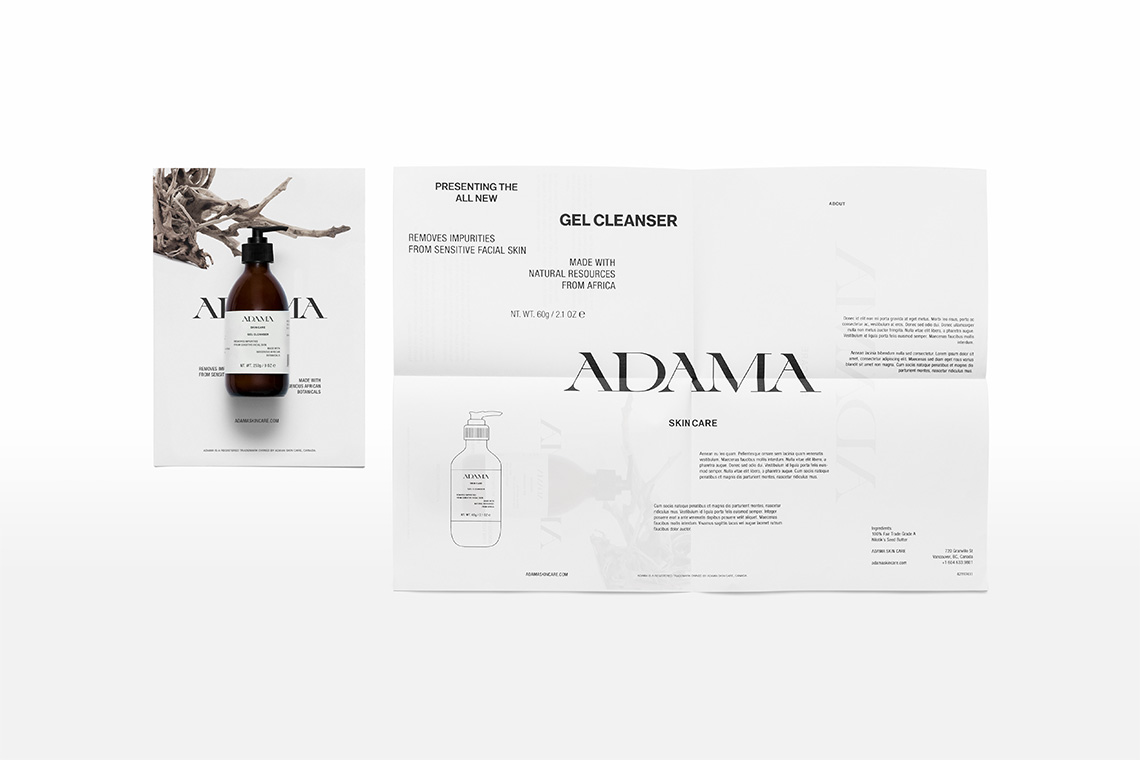 The brand features embossed roots representing the most important ingredient in their products, the Nilotik'a tree. Anagrama developed a sophisticated packaging enhancing and complimenting the Nilotik'a tree healing attributes. Reflecting the brand's elegance and purity, we employed black and white colours and accentuated details in gold striking an emphasis on the sumptousness of Adama's botanical products. — (A)