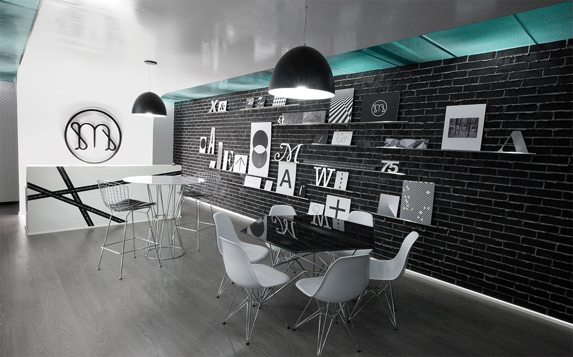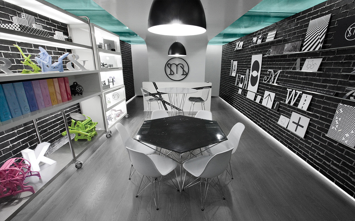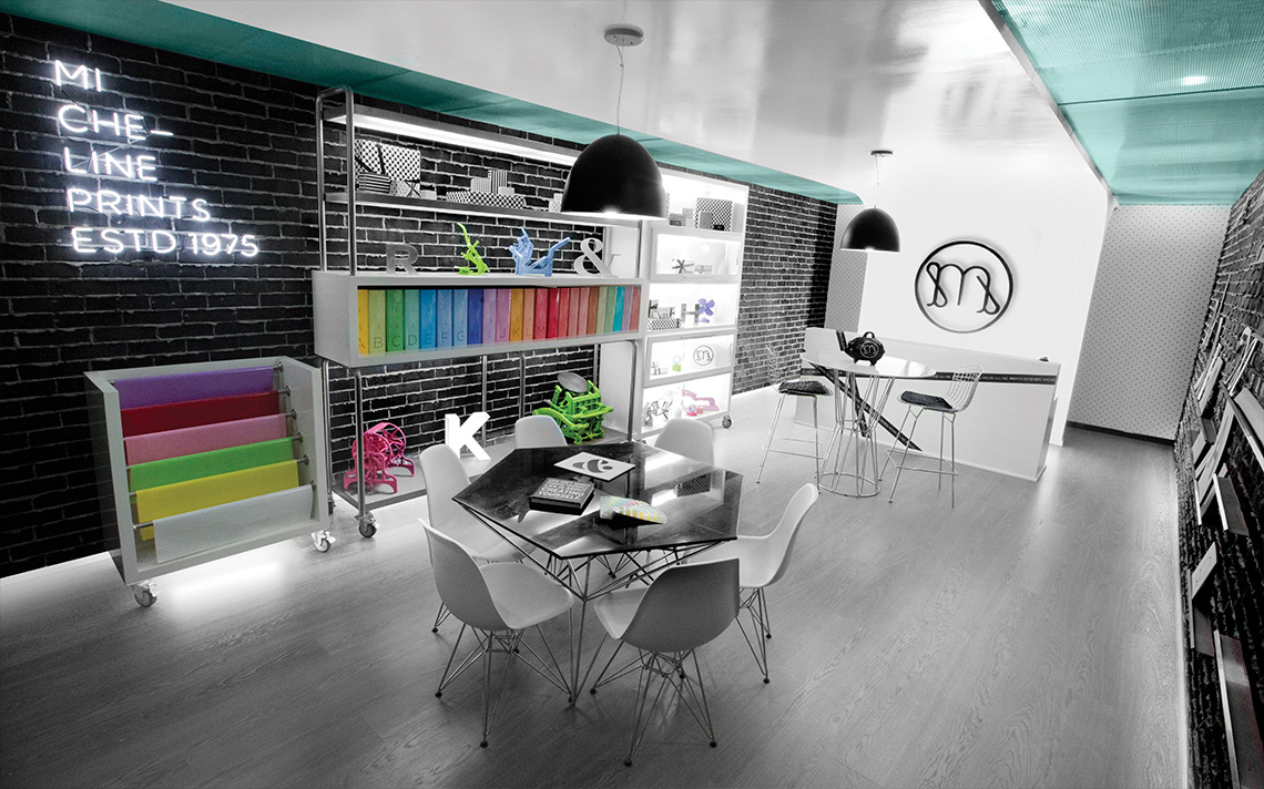 The space is inspired in the ambiance of print-shops in the seventies: it has a few contemporary accents such as the lighting, which gives the interiors a vanguardist atmosphere. We made sure to use a neutral color palette to focus all of the attention on the shelves holding the printing catalogues, as well as to emphasize the brand's presence. This project was developed with the collaboration of our friends German Dehesa and Roberto Treviño. — (A)