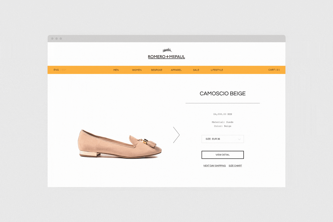 For this digital project's re-design, we created a platform with a bespoke product elaboration section allowing users to complete their purchases in a personalized manner. The user can select colors, materials and embroidery styles as well as completing the transaction through a diversity of online payment options. The website's redesign covers the brand demands in a simple manner, employing predominantly large images, visual rests and typographical arrangements that facilitate product navigation without leaving aside aesthetics and functionality. — (A)