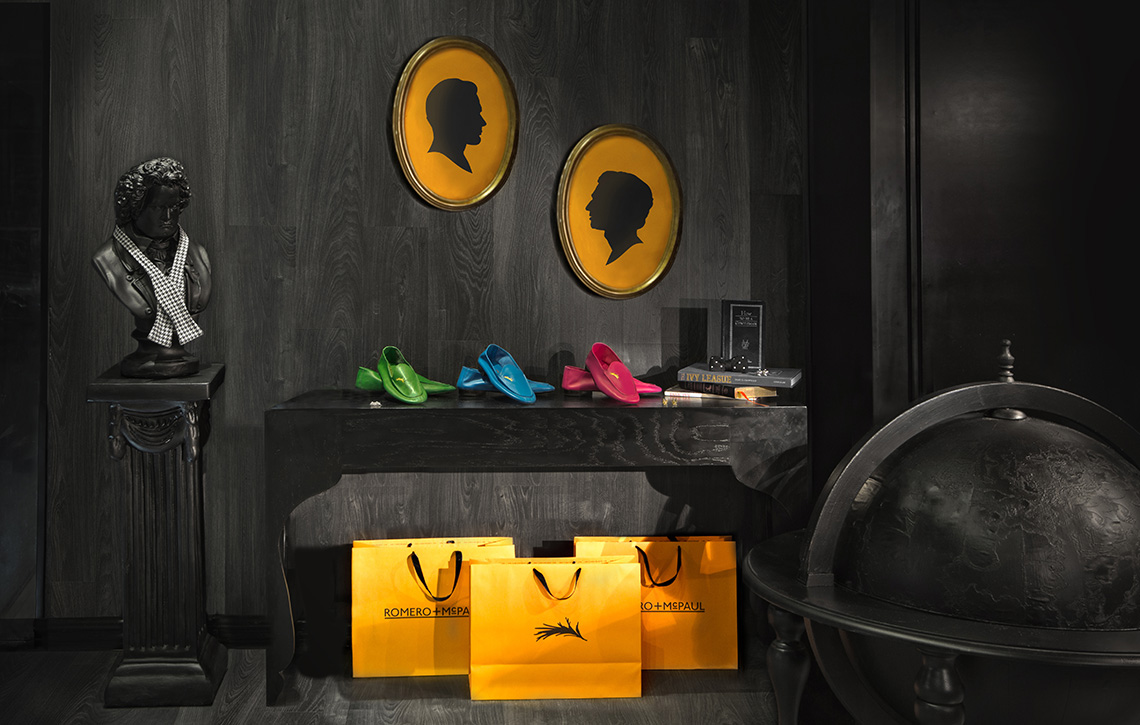 Romero+McPaul is a premium brand specializing in the sale and design of traditional English-style velvet slippers induced with a bright, trendy twist. Velvet shoes have a rich presence in English royal hospitality. They were traditionally placed in the king and queen's royal guest's rooms for their comfort.