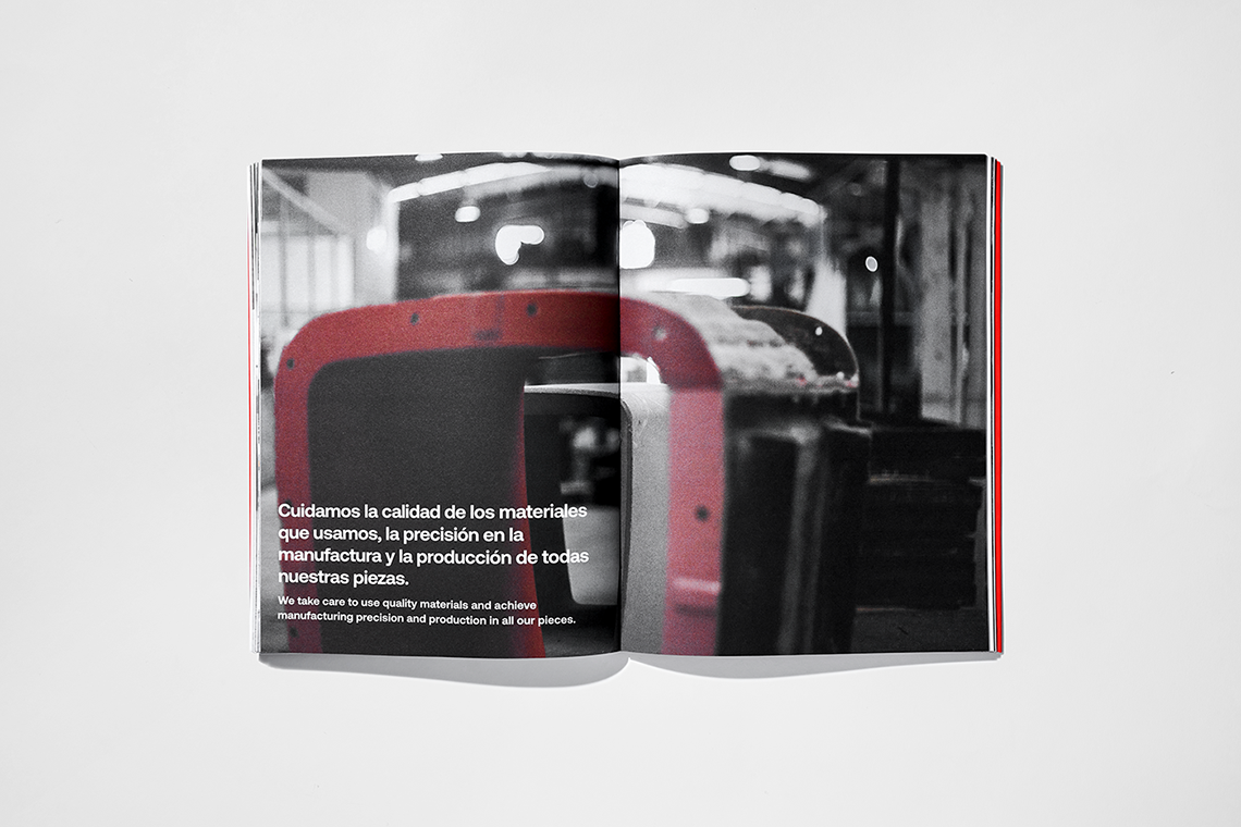 The Brix sans font, which is part of the brand, was incorporated into the book details. We also employed Aeonik for being a geometric sans serif typeface that balances the layout with direct and clean arrangements. This typeface is applied in various hierarchies by varying its weight. The grid maintains a traditional format and is easily appreciable by the reader.