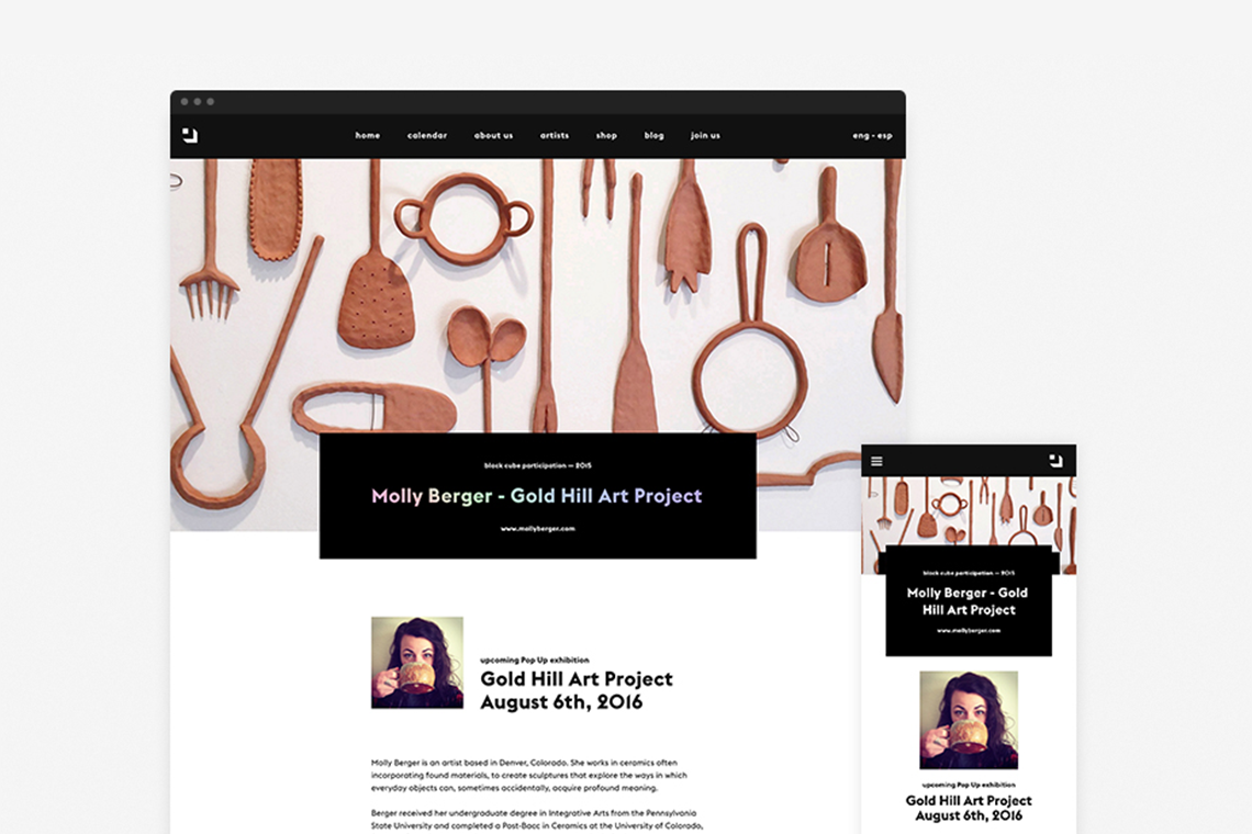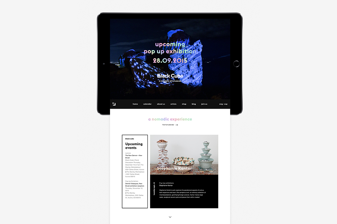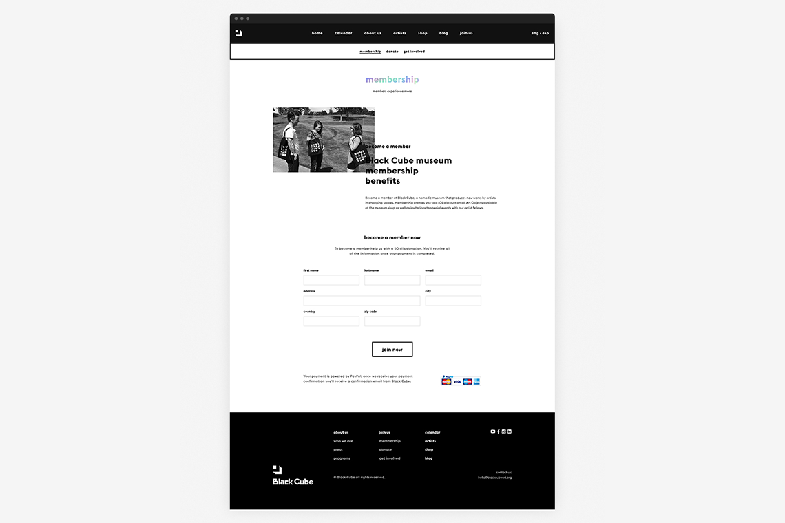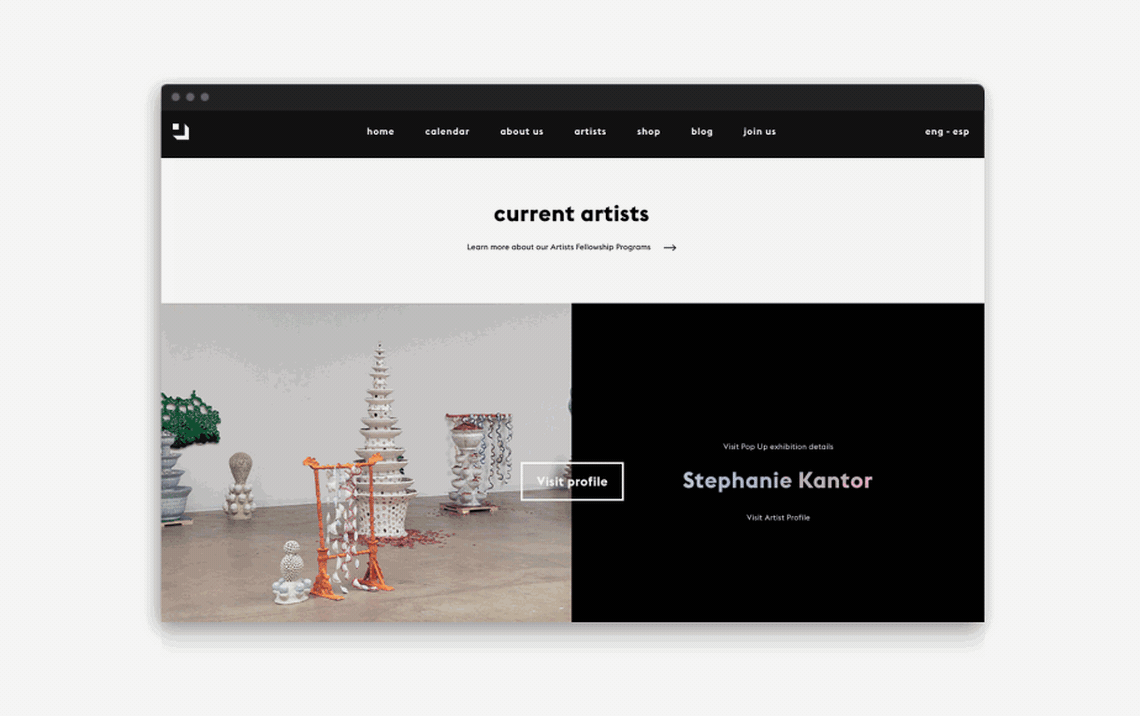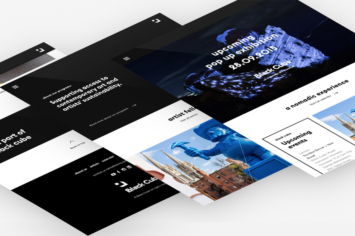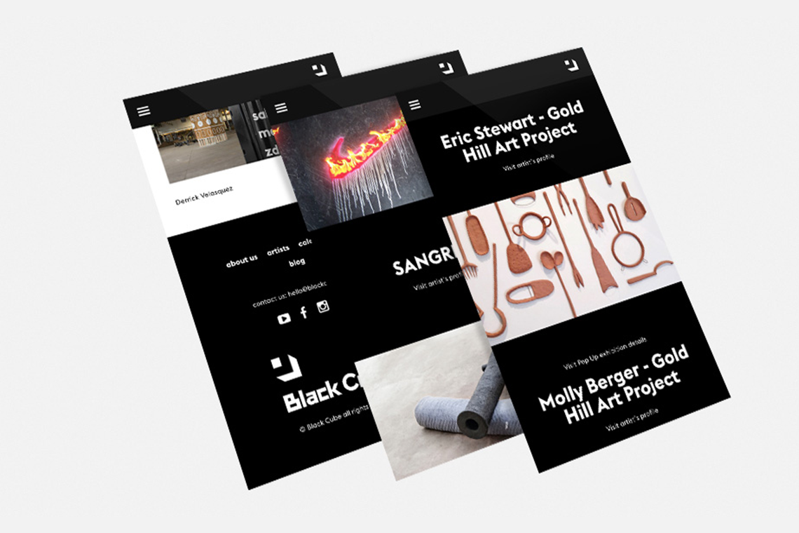The website lets the user navigate from an artist's profile to their current or past exhibitions allowing them to explore new emerging artists around the world as well as learning how to get involved with the museum and become part of Black Cube’s experience.