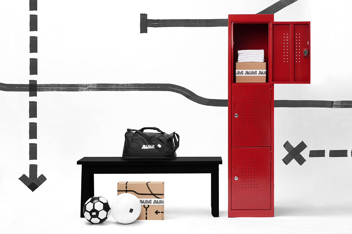 The pattern is a representation of the annotations drawn on strategic play boards. The JimJams pattern reminds us of team sports in a very visual way. The brand pattern and the elements that make up this project aesthetically communicate the guiding concept behind the brand: Sports. — (A)