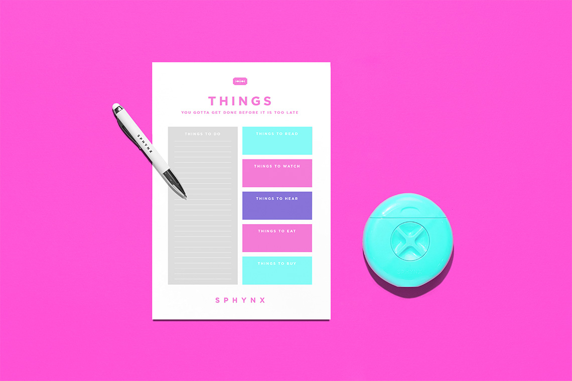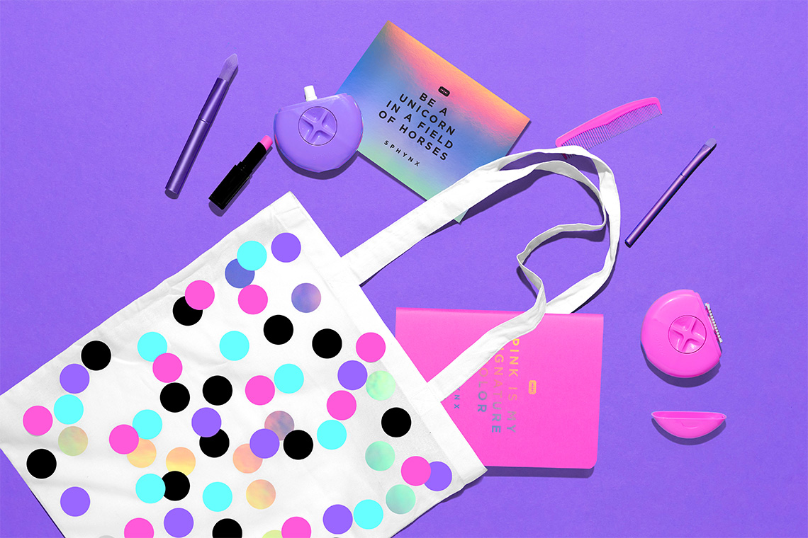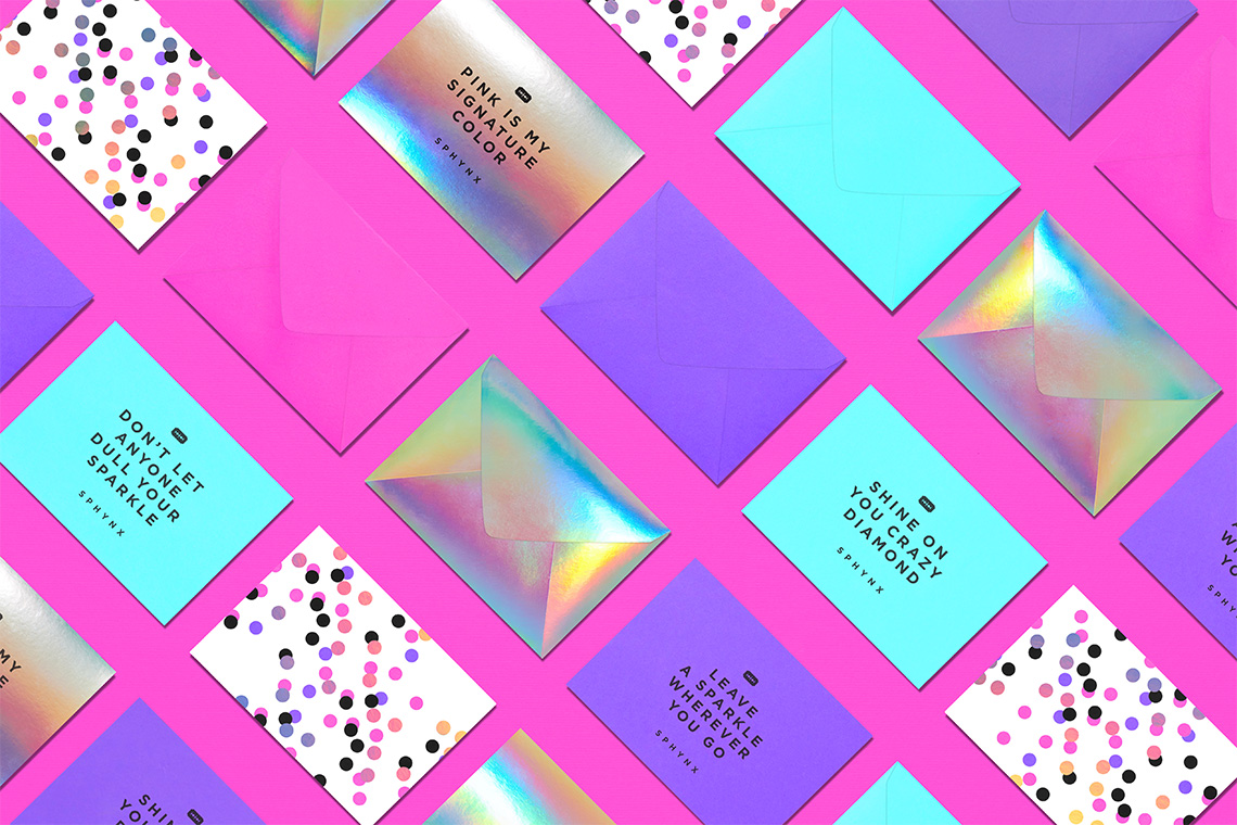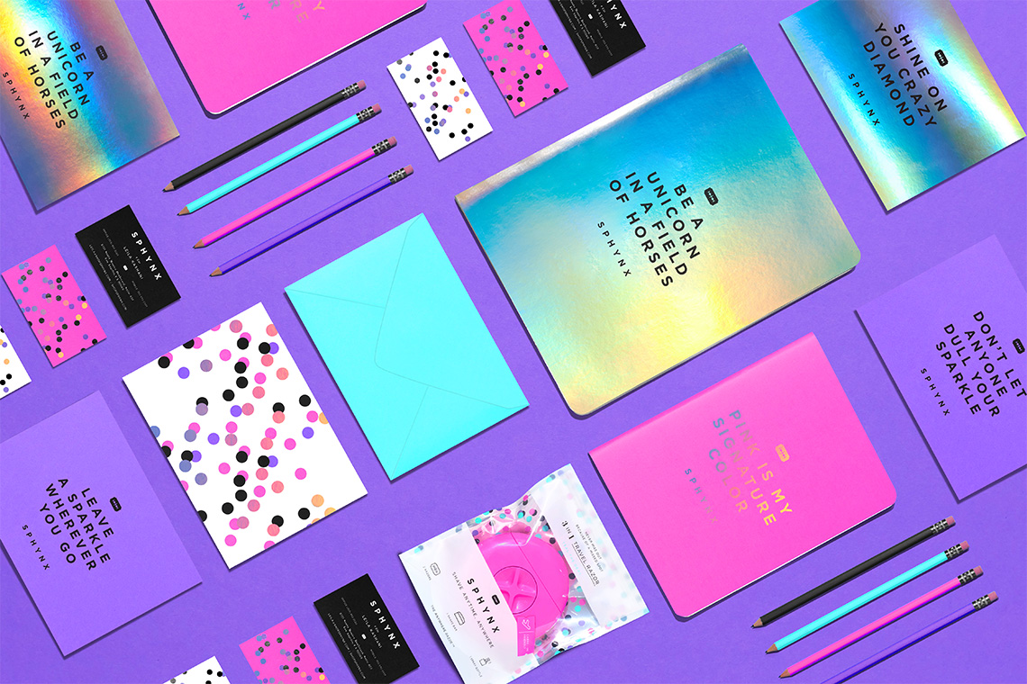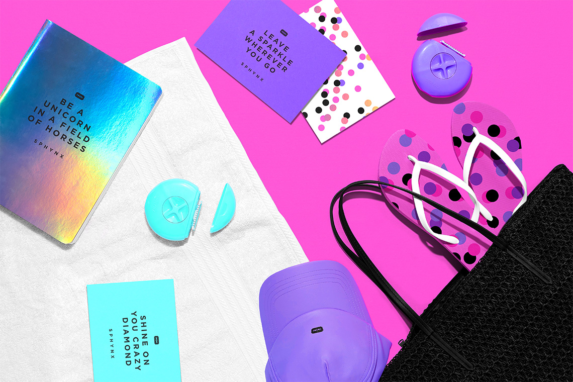The brand pattern is inspired by circular polka dots that create a relaxed but dynamic texture complementing the brand's graphic communication. Gotham typography was selected for its geometric, readable and timeless style to accompany Sphynx's typographical provisions, complementing the modern tone of voice required by the brand. — (A)