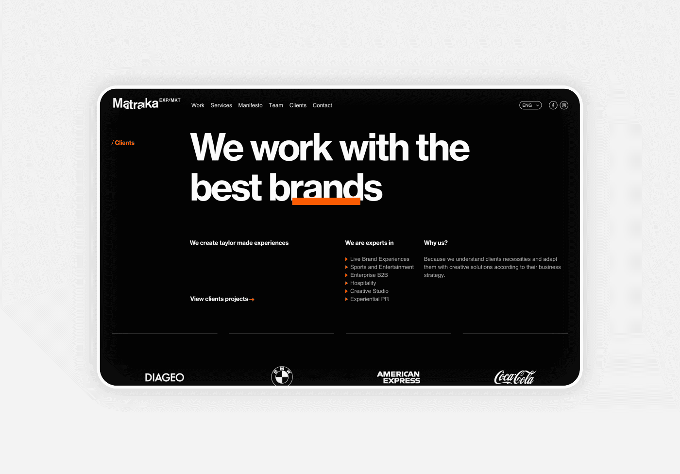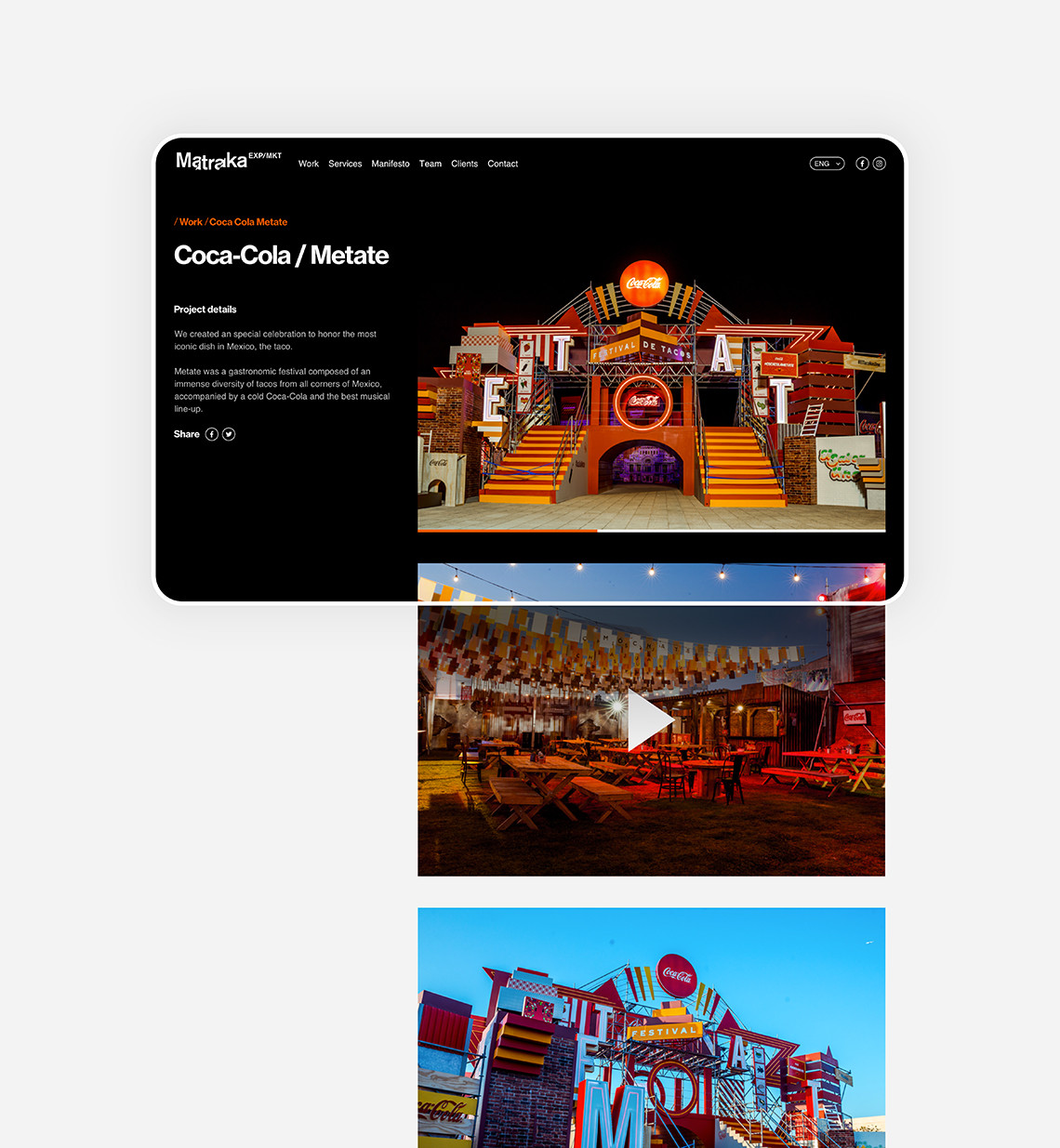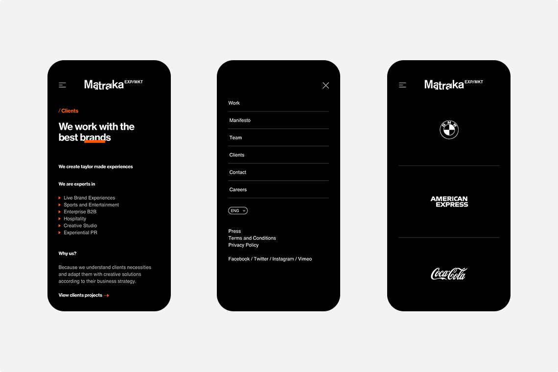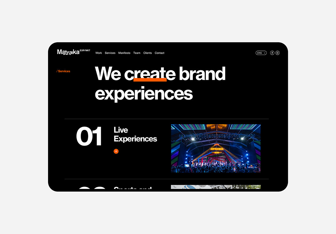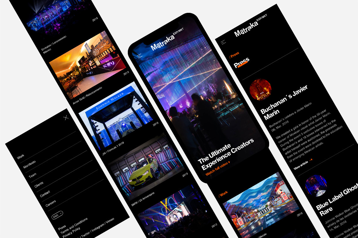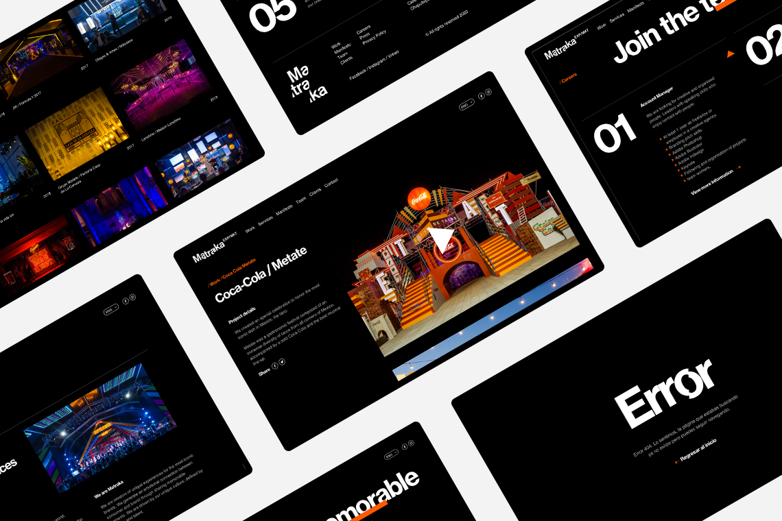 The new Matraka platform that we designed with a simple and dynamic image, facilitates the user's site exploration while transmitting the same emotions that are experienced on events created by the brand, captivating the viewer from the first interaction. — (A)