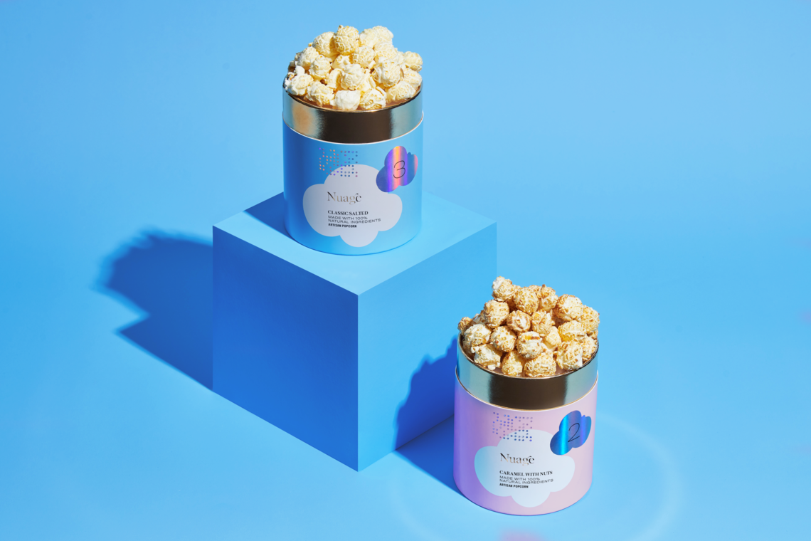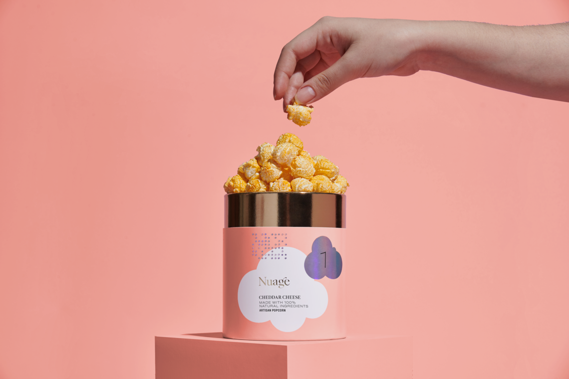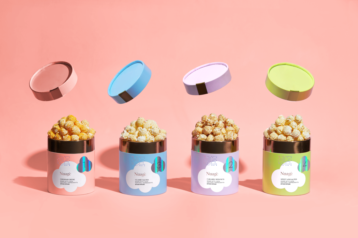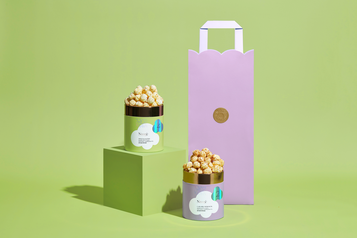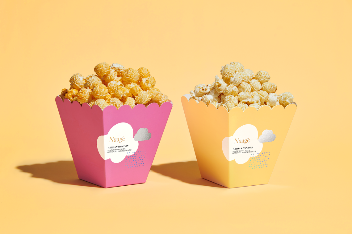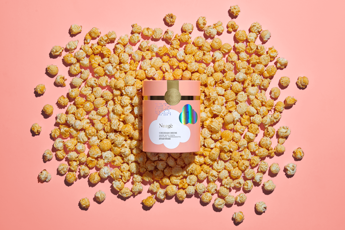Develop a popcorn brand reflecting an elegant and joyful attitude