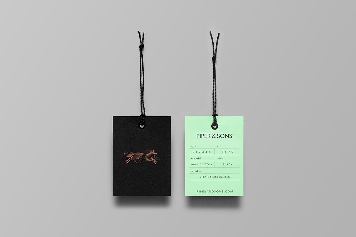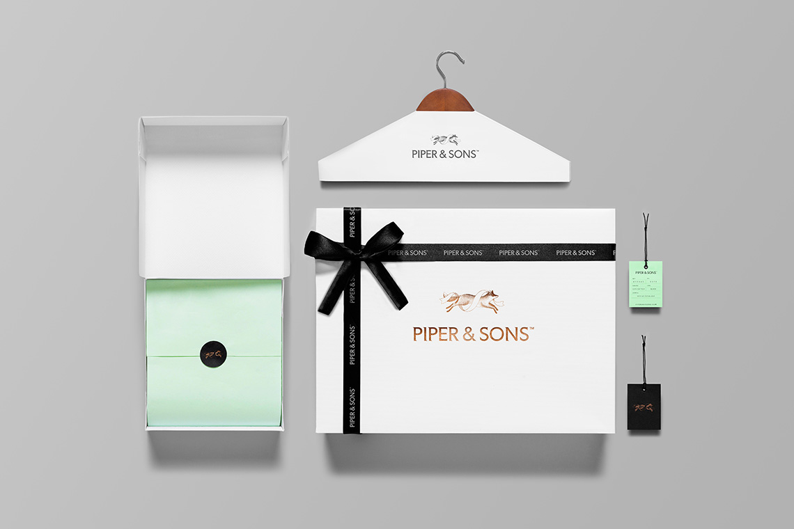 Like their clothes, our branding for Piper & Sons is characterized by a cool, contemporary style, high brand value, and exceptional craftsmanship. Drawing inspiration from nature, fantasy, and the youthful innocence of children, our proposal consists of a mature logotype that communicates the brand's premium value and a whimsical jumping fox reminiscent of typical children's fairy tale characters.