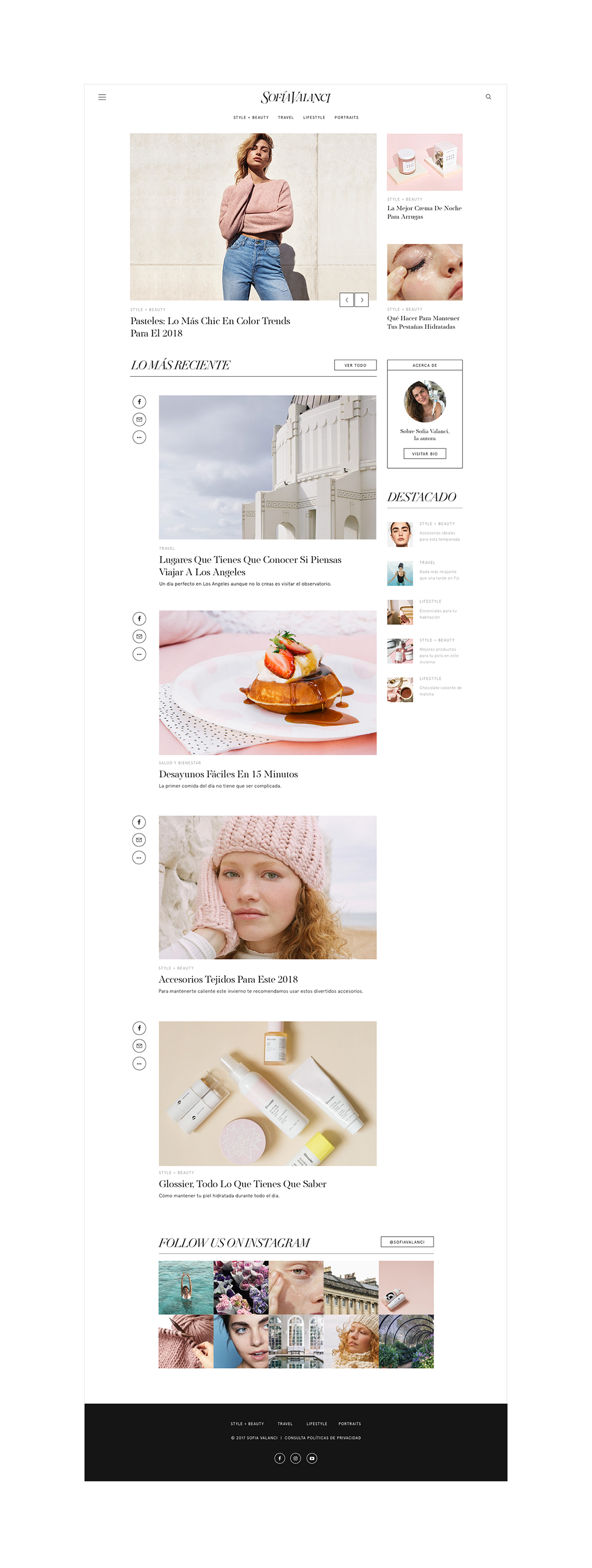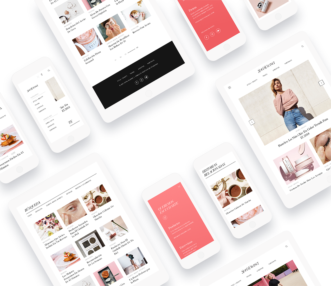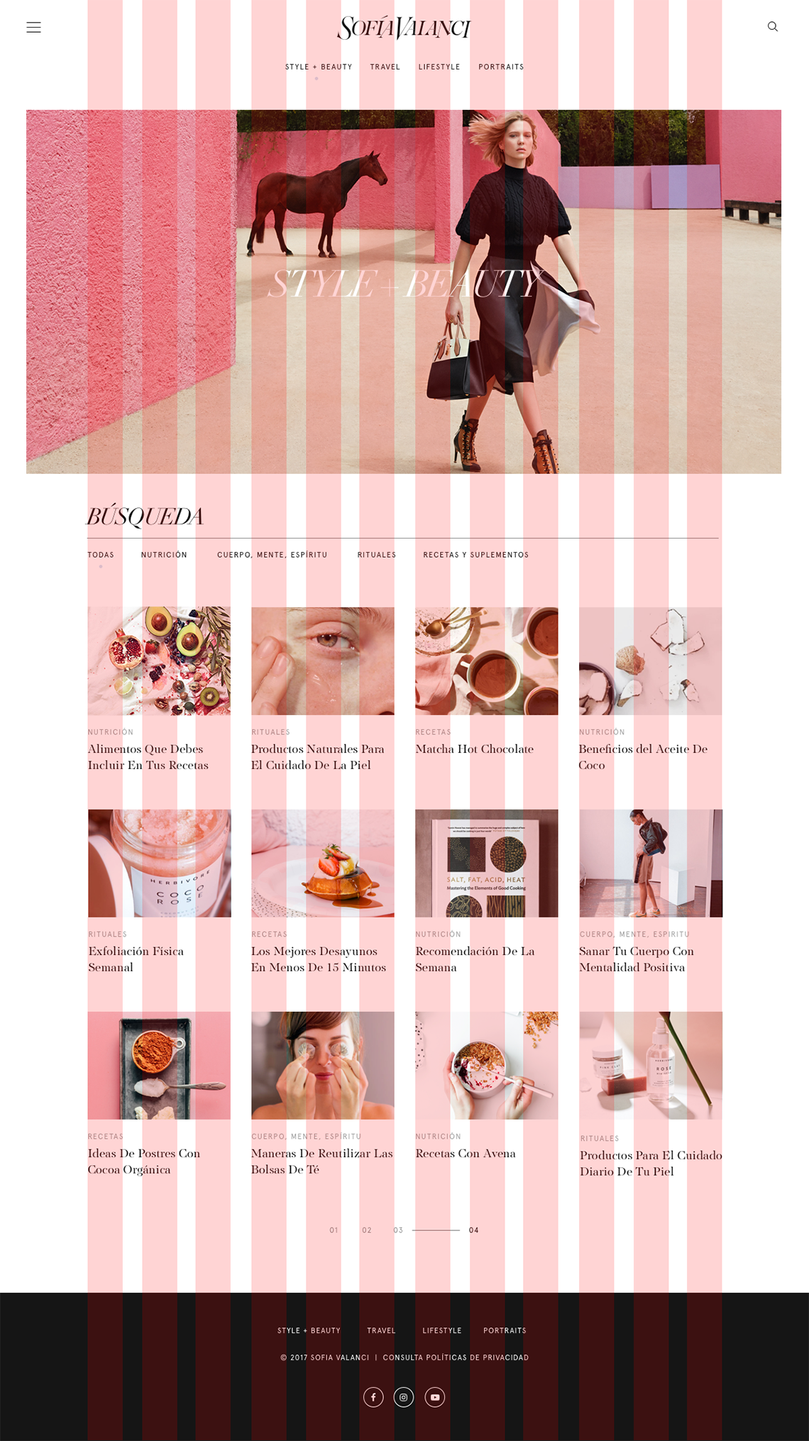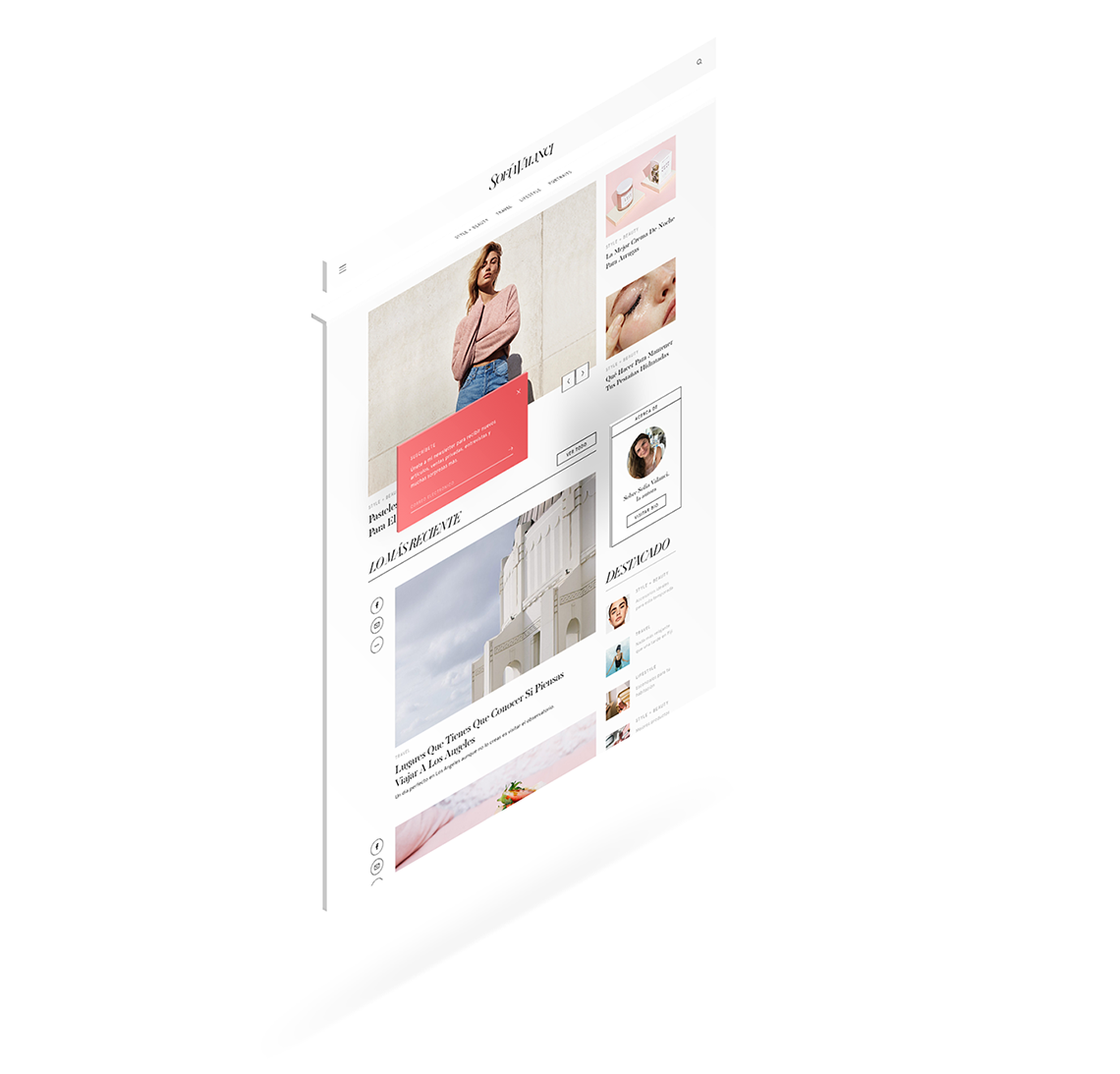 Each blog category was given a specific color creating the right atmosphere for each theme. The color palette revolves around the idea of femininity free of its more common social tags.
