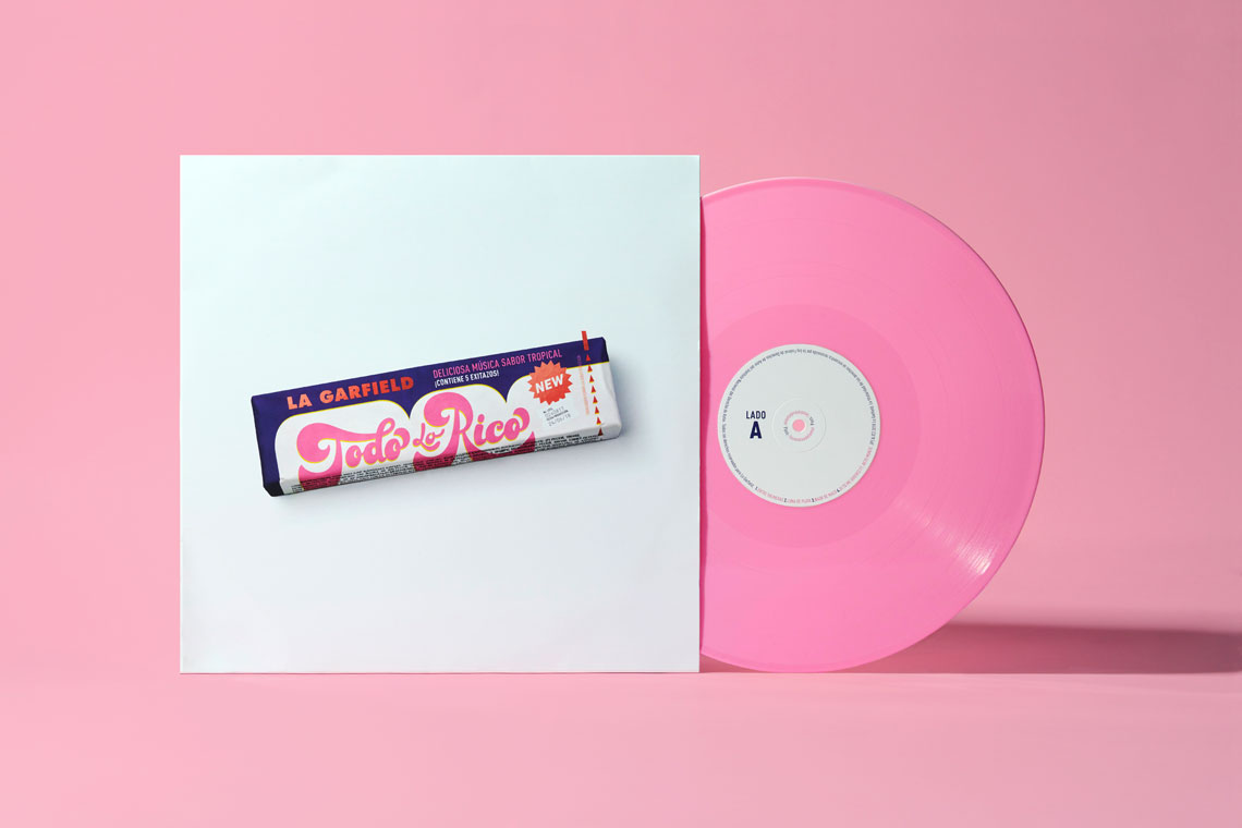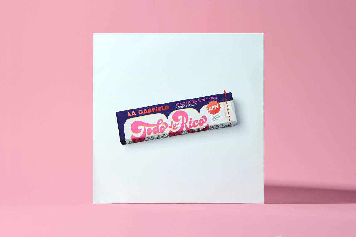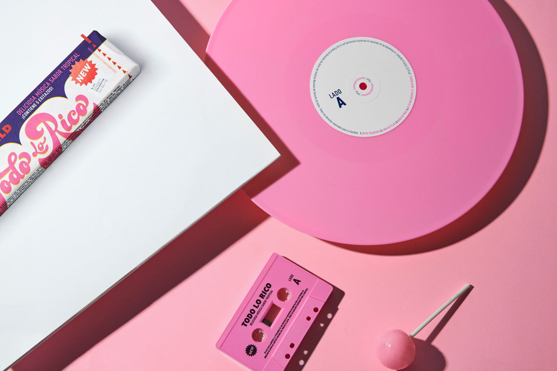 We developed an idea, whose origin can be identified in food packaging. The words “lo rico” which can be rendered to Spanish as "the good" or "the tasty" guide our work into a modern and colorful candy concept. With this newly elaborated system for the album contents including a variety of candy and packaging, depending on the single's name, we were able to integrate all of the “sweetness” of the Latin American culture. — (A)