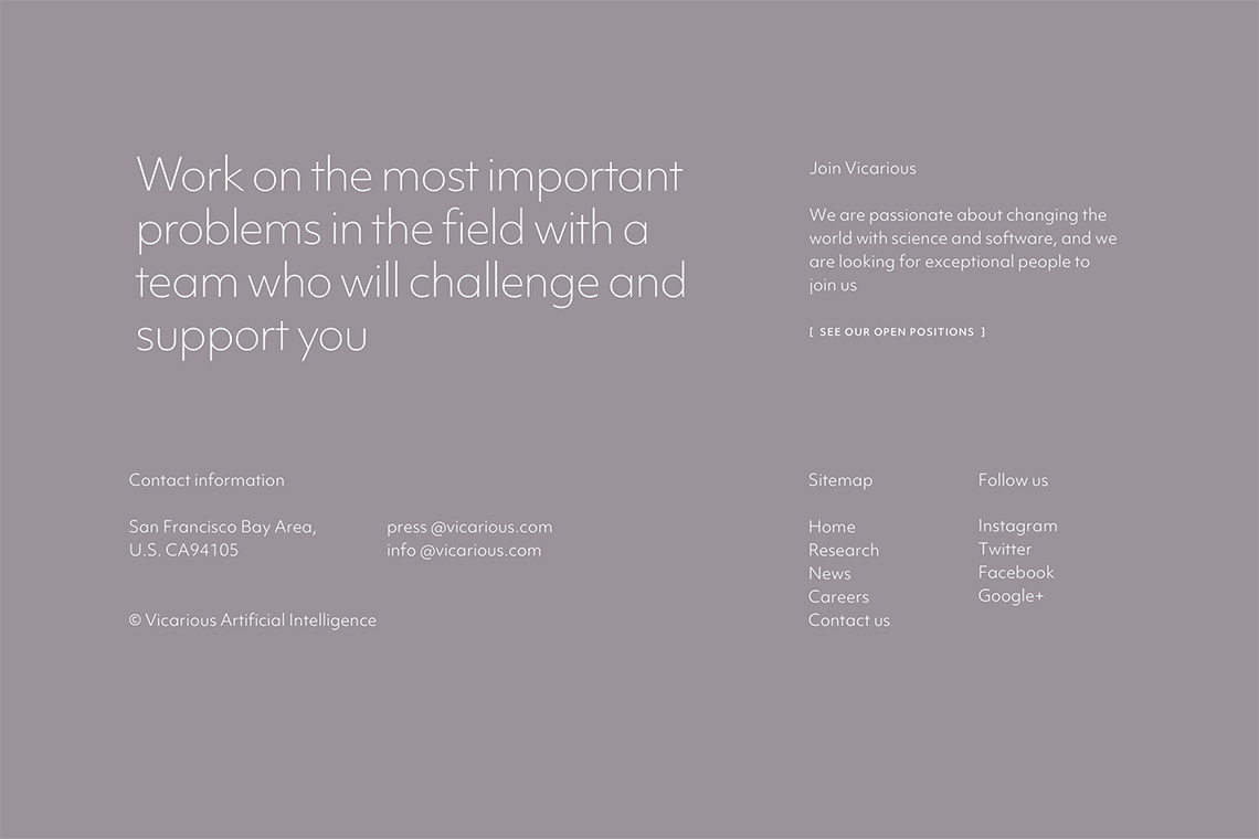 Vicarious is a company located in San Francisco, California specializing in the development of artificial intelligence. Teaching robots new actions becomes an easy task if they feature a conceptual understanding of the world, as we humans have. For this reason, the company is dedicated to the creation of algorithms, based on the computational principles of the brain, with the objective of attaining the ability to think and learn as humans do.