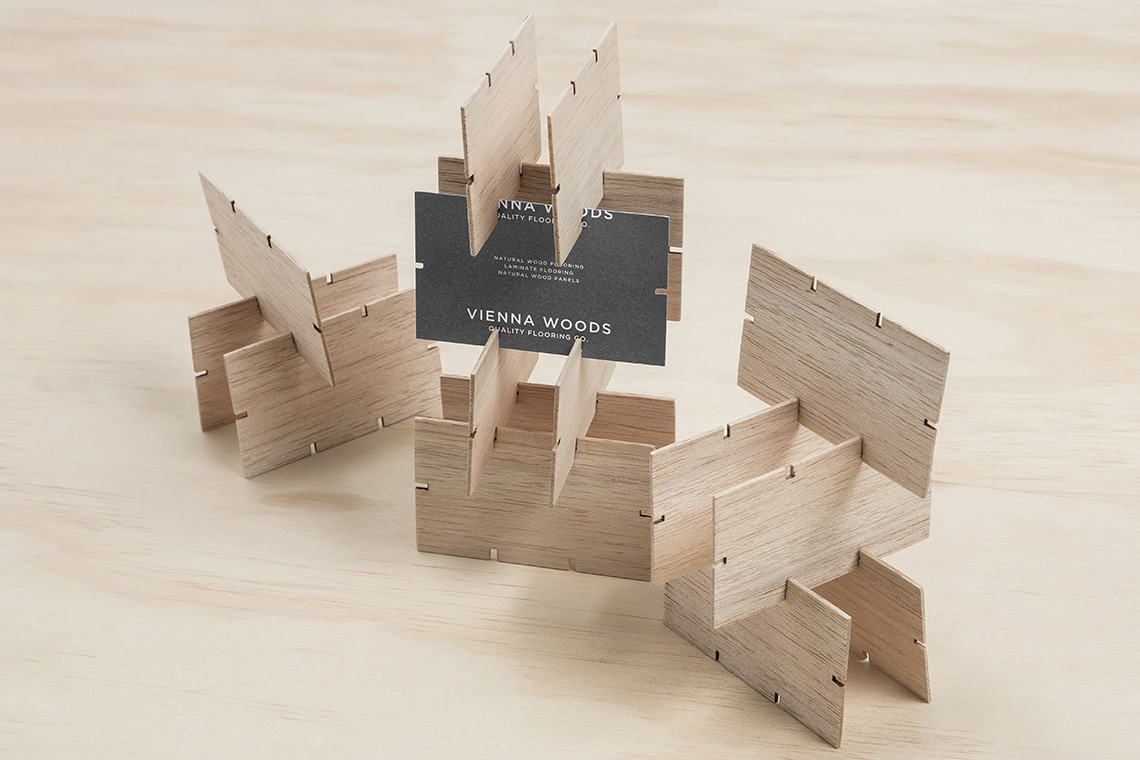 Our proposal is based on one element: wood. Its qualities, including texture, form, and color are the core inspirations for the brand. We exploited these details and amplified their dimensions in order to get to de essence of the material, which is conformed by organic curves. We designed a logo that simulates these characteristics by joining lines with asymmetric inclinations. Graphic components found in the modulation of wood tiles draw inspiration for the brand’s stationary. We replicated and thus incorporated the uneven distribution of logos found in the back of wood tiles and the cut-in and out structure found in its contouring. Integrating image and product in an engaging way. — (A)