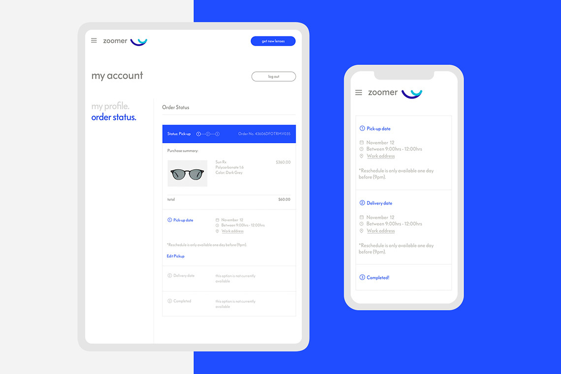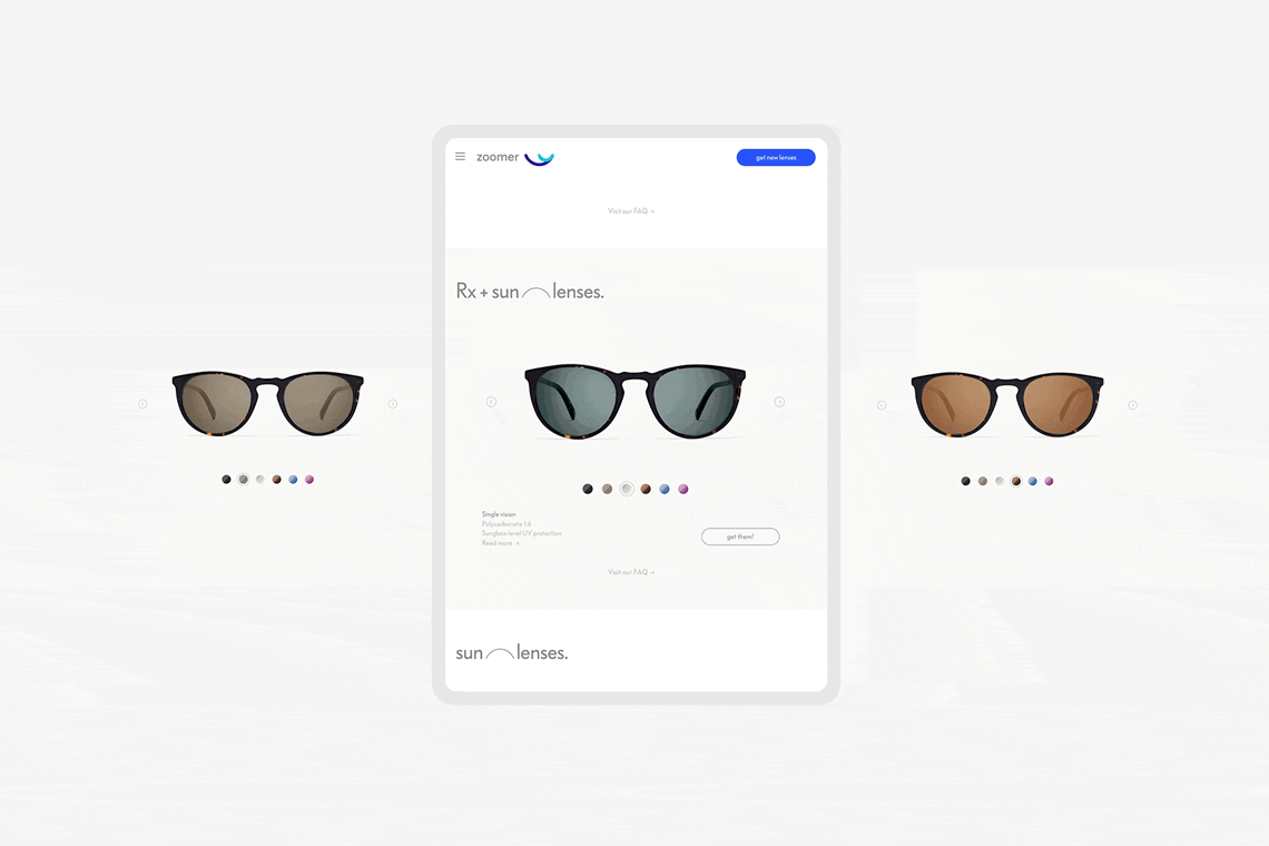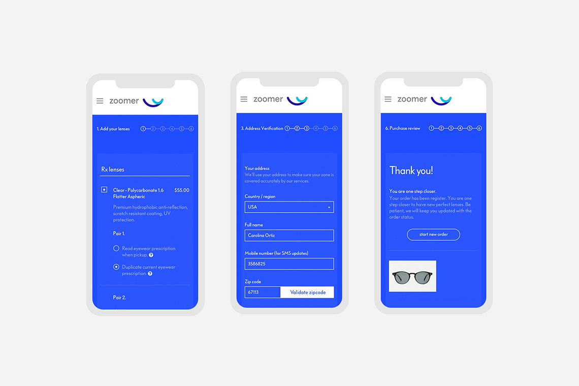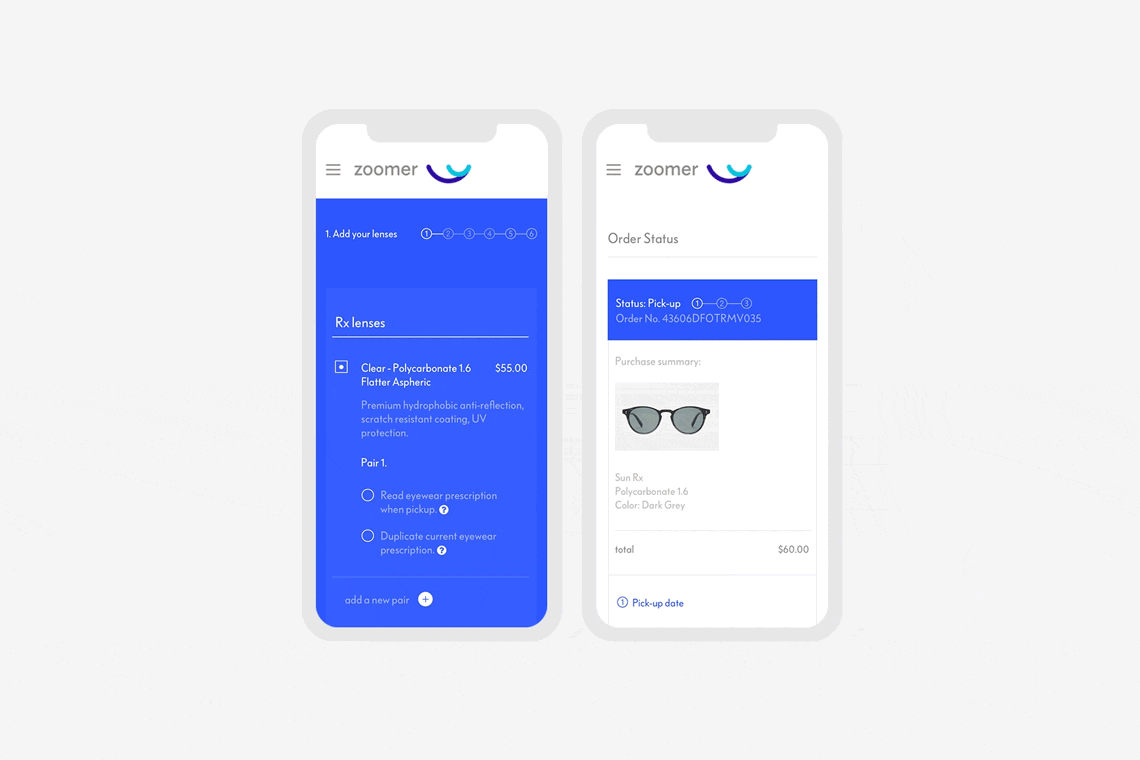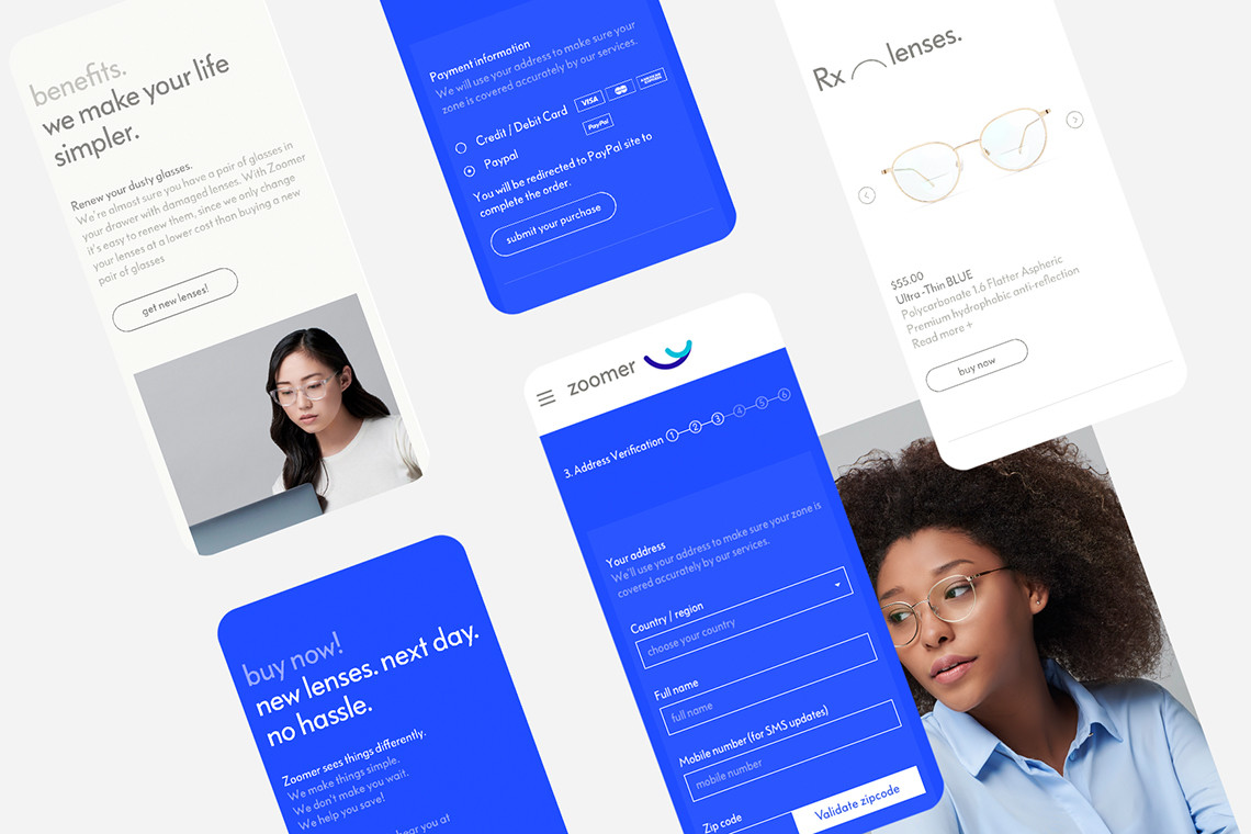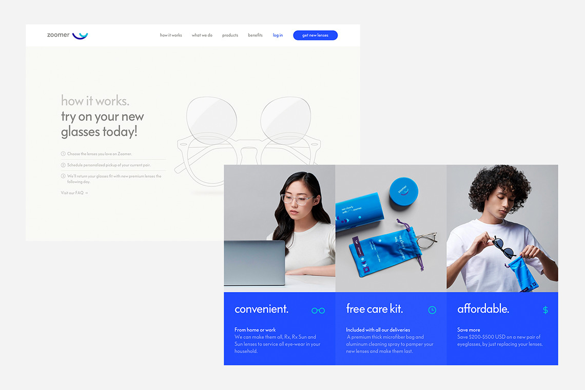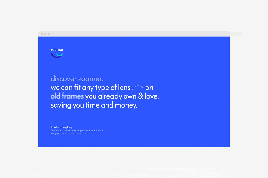 Zoomer is a company dedicated to the manufacture and renovation of lenses for existing frames. The company exchanges the traditional in-person process for one that occurs online providing everything from a pick-up service of your frames and finished product delivery at your home.
