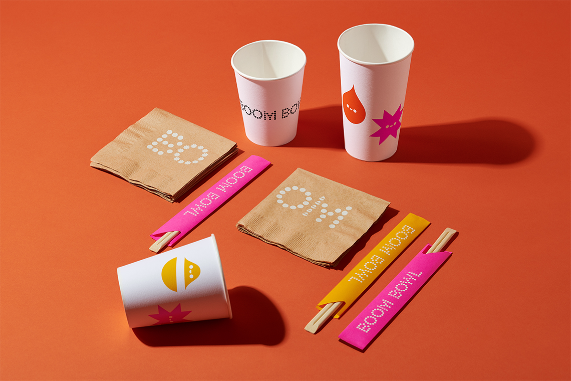 Creamos una tipografía dinámica basada en Lab Grotesque de Letters From Sweden con un sistema basado en puntos que incluye cuatro iconos funcionando individualmente y representando los componentes que conforman al platillo: base, proteína, toppings, y ade
