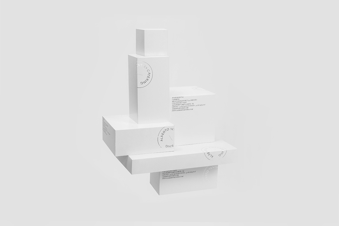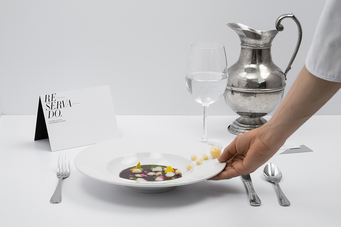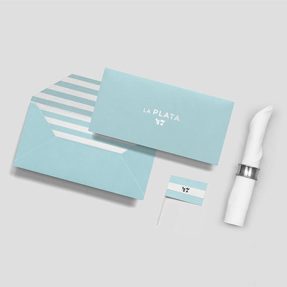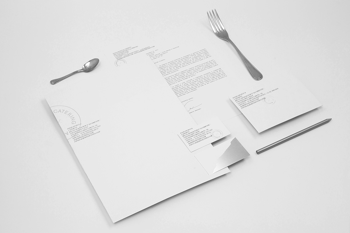 Our design proposal upraises Sentíes' authorship primarily by the use of a seal to communicate his gastronomic mastery. The seal uses a typographical combination of Akzidenz Grotesk and Didot to to give it a surprising, elegant and modern touch. The vast play on typography found throughout the brand represents the chef's creative and expansive use of texture in his culinary creations. His style is clinically clean, precise and loyal to its location, the northeastern city of Monterrey in northern Mexico. The business card's odd foil patch is actually a piece of the city's iconic Cerro de la Silla silhouette. — (A)