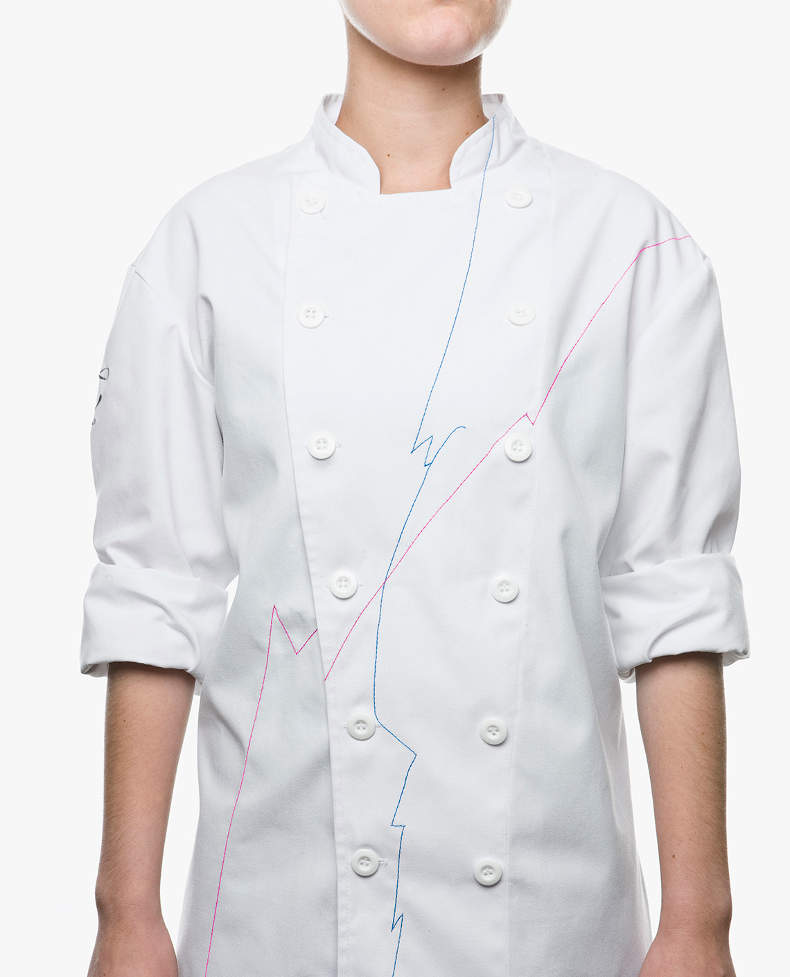 We placed two lines in cyan and magenta, as a relation with a modern French flag.